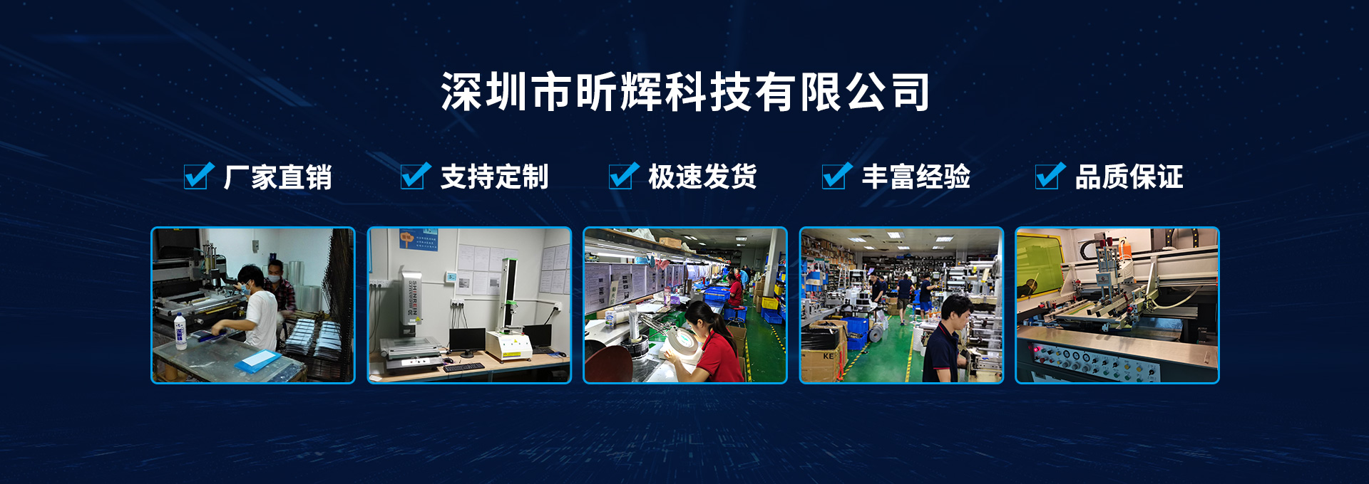 深圳市昕輝科技有限公司成立于2010年11 月,由廈門(mén)昕輝電子有限公司搬遷而來(lái),位于中國(guó)深圳市坪山新區(qū),地理位置優(yōu)越。擁有16年的生產(chǎn)管理經(jīng)驗(yàn),是一家集生產(chǎn)、銷(xiāo)售、設(shè)計(jì)于一體的生產(chǎn)型制造商。主要生產(chǎn)FPC/PCB/EL/LED薄膜開(kāi)關(guān)、觸摸按鍵、薄膜按鍵、薄膜電路、觸摸電路、汽車(chē)重力傳感器、薄膜壓力傳感器、EMS腹部貼紙、EMS足部按摩器、EMS按摩器,EL發(fā)光酒標(biāo)、EL發(fā)光標(biāo)志、LED/EL背光、鍍金/鍍鎳、鍋?zhàn)衅?、金屬?gòu)椘?、液晶顯示器、觸摸屏等產(chǎn)品。